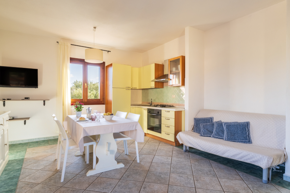 21 APPARTAMENTI Ubicati in posizione tranquilla, la struttura si trova a circa 800 mt dal centro storico della rinomata cittadina di Santa Teresa, a pochi passi dalla vivace piazzetta principale e dal porticciolo. , SPIAGGIA Dista circa 1 km dalla spiaggia di Rena Bianca, in parte libera e in parte attrezzata con stabilimenti balneari, di sabbia bianca e fine e mare cristallino. La struttura fornisce gratuitamente 1 ..