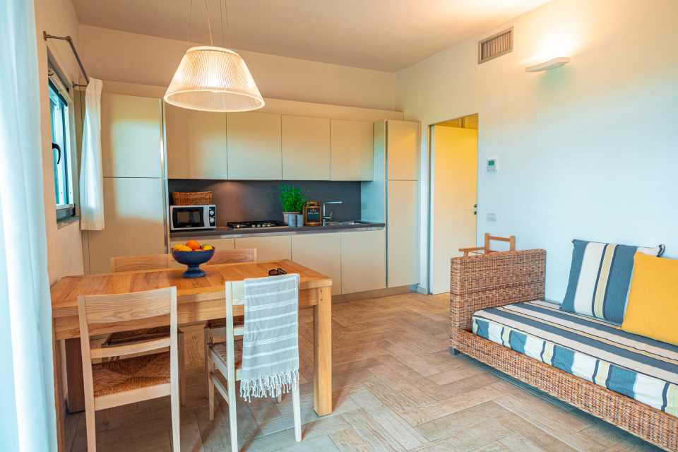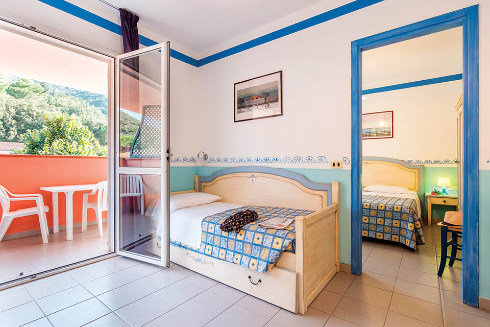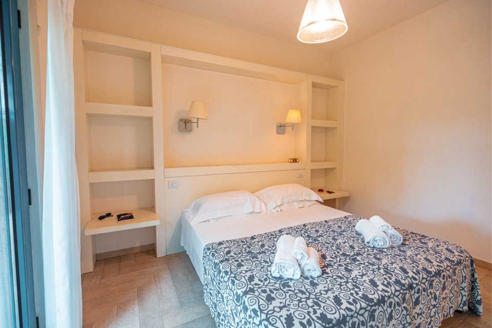 HOTEL 119 CAMERE - 109 APPARTAMENTI Il complesso si presenta come un piccolo borgo, stretto dall'abbraccio della natura incontaminata ed affacciato su una suggestiva insenatura. Immerso in un giardino ampio e curato, è composto da un corpo centrale a due piani dove, oltre ai servizi principali, sono inserite le camere per gli ospiti in Formula Hotel e da una serie di palazzine dislocate negli ampi spazi del villaggi ..
