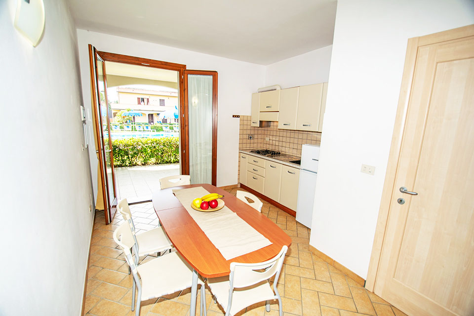 107 APPARTAMENTI Il complesso si presenta come un piccolo borgo, stretto dall'abbraccio della natura incontaminata ed affacciato su una suggestiva insenatura. Immerso in un giardino ampio e curato, è composto da un corpo centrale a due piani dove, oltre ai servizi principali, sono inserite le camere per gli ospiti con Formula Hotel e da una serie di palazzine dislocate negli ampi spazi del villaggio dove s ..