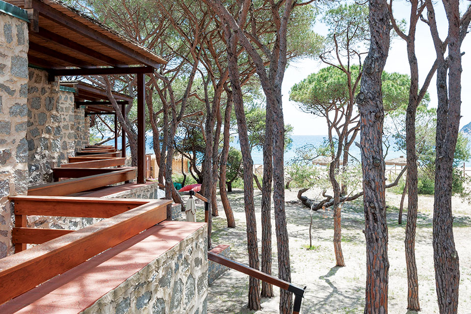 HOTEL 76 CAMERE E' situato nella piccola baia di sabbia di Spartaia, con un arenile lungo poco più di 250 mt che digrada dolcemente in un mare cristallino. La struttura si affaccia direttamente sulla spiaggia, in un grande parco privato di 7 ettari con grandi spazi verdi ombreggiati da pini marittimi e prati dove poter prendere il sole in tranquillità. E' composto dal corpo centrale con il ristorante, il bar e la ..