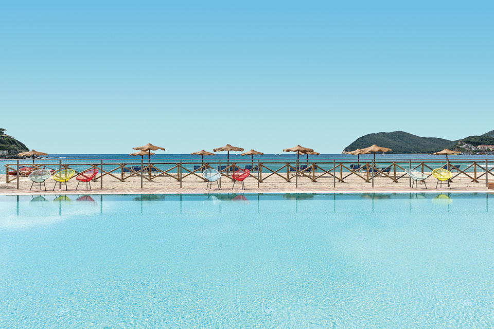 HOTEL 117 CAMERE L'elegante struttura, costituita da un corpo centrale e da piccoli e graziosi villini, si affaccia direttamente sulla spiaggia in un tratto di costa di rara bellezza, è immerso nella rigogliosa macchia mediterranea circondato da corbezzoli, lecci e lentischi. A circa 9 km si trova il centro di Portoferraio. , SPIAGGIA PRIVATA servizio gratuito. L'hotel, ubicato direttamente sulla spiaggia di sabbia ..