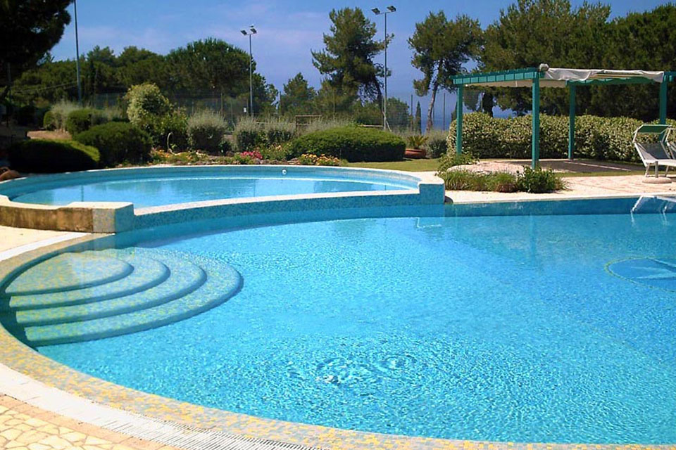 HOTEL 40 CAMERE - 36 APPARTAMENTI Immerso in una rigogliosa vegetazione, il complesso dalla caratteristica architettura mediterranea dispone sia di camere che di appartamenti articolate in varie costruzioni sulla collina vista mare. , SPIAGGIA A 100 mt si trova la zona mista di sabbia e prato attrezzata con ombrelloni e sdraio, mentre la spiaggia di Lido dista 3 km. Possibilità di attracco natanti a pagamento. Nelle ..