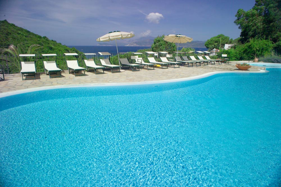 HOTEL 40 CAMERE - 36 APPARTAMENTI Immerso in una rigogliosa vegetazione, il complesso dalla caratteristica architettura mediterranea dispone sia di camere che di appartamenti articolate in varie costruzioni sulla collina vista mare., SPIAGGIA A 100 mt si trova la zona mista di sabbia e prato attrezzata con ombrelloni e sdraio, mentre la spiaggia di Lido dista 3 km. Possibilità di attracco natanti a pagamento. Nelle ..