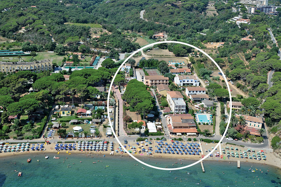 HOTEL 142 CAMERE Il complesso si trova al centro del Golfo di Lacona, in un contesto suggestivo fra l'azzurro del mare e il verde delle colline, immerso in un parco di pini, cipressi e lentischi. A due passi dalle lunga spiaggia di sabbia fine del golfo è luogo ideale per rilassarsi, vivere il mare e la natura circondati dall'incantevole cornice del Parco Nazionale dell'Arcipelago Toscano. A circa 12 km si trova il ..