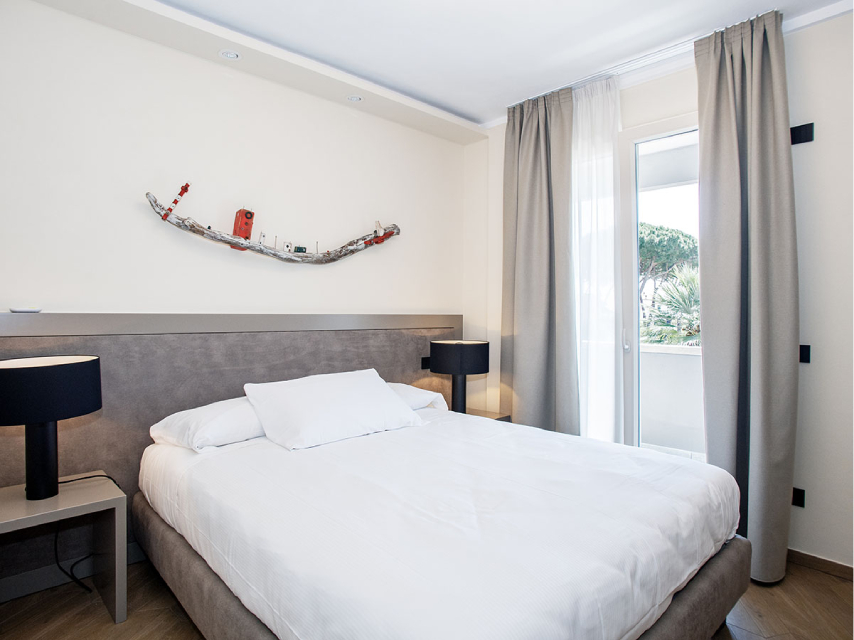 HOTEL 24 CAMERE Ubicato in posizione privilegiata, offre l'opportunità di un piacevole soggiorno in assoluta tranquillità, in un ambiente a gestione familiare. Situato ai margini della pineta, è composto da un corpo centrale e da un’altro edificio attiguo denominato La Vela, dista circa 500 mt dal centro del paese facilmente raggiungibile con una breve passeggiata sul lungomare. , SPIAGGIA CONVENZIONATA Dista ci ..