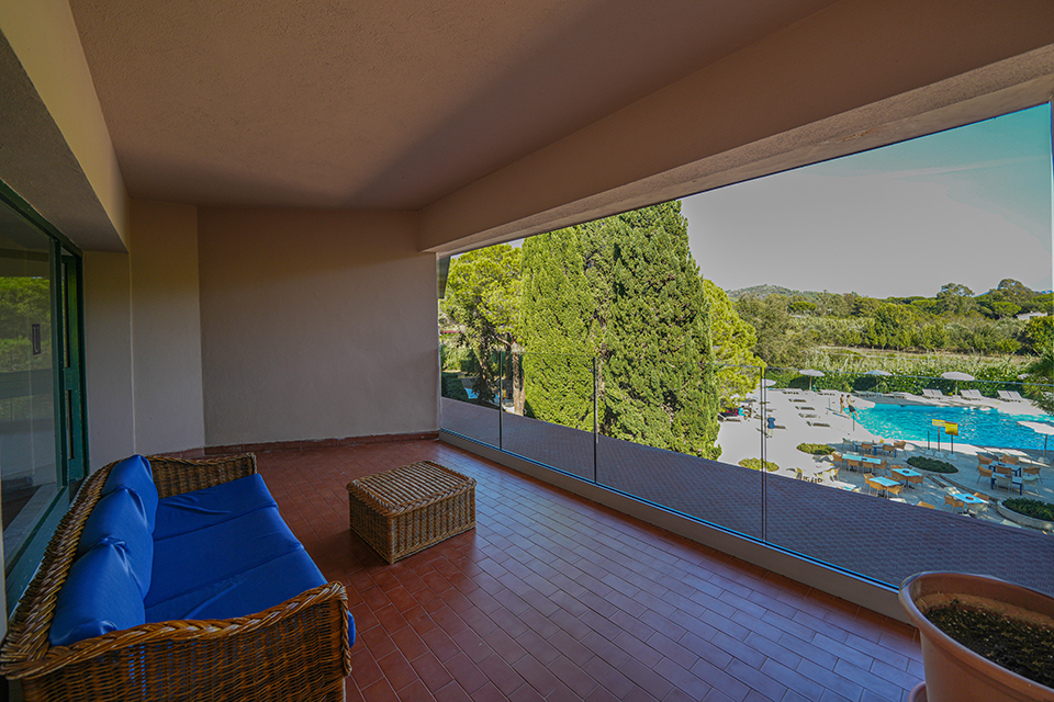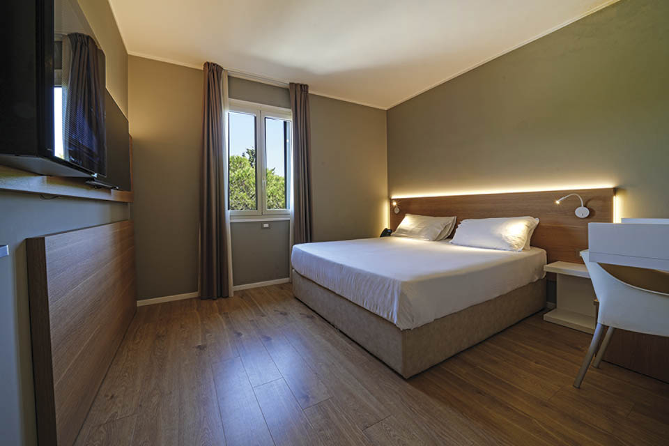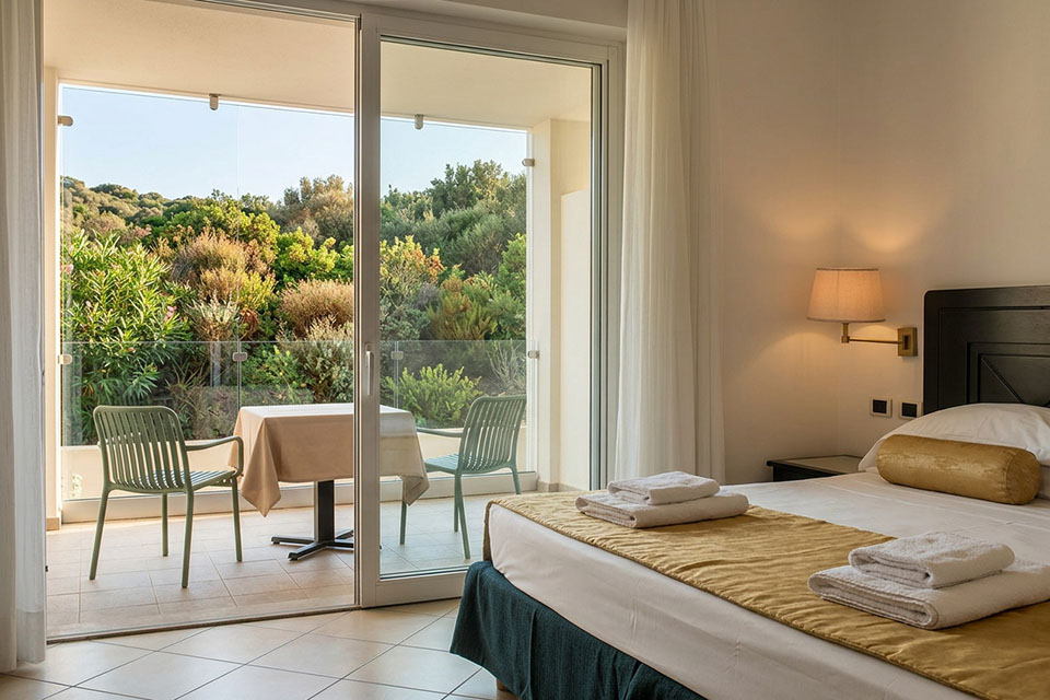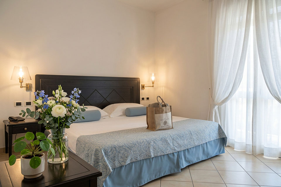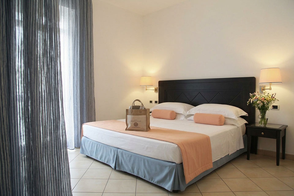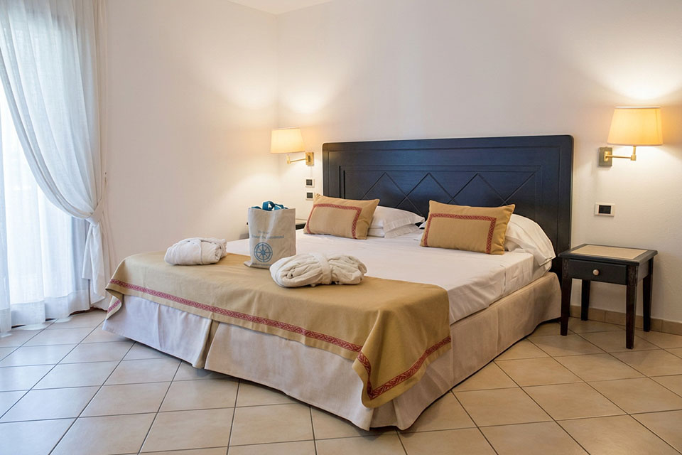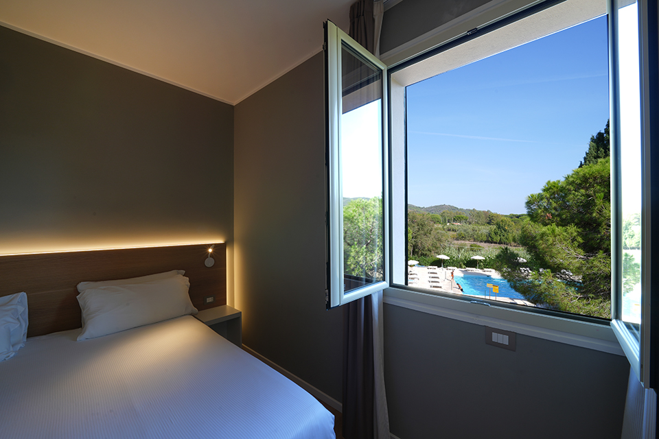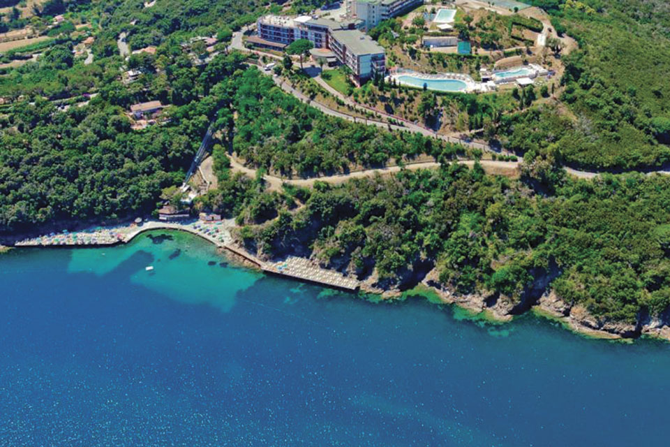 HOTEL 119 CAMERE - 109 APPARTAMENTI Il complesso si presenta come un piccolo borgo, stretto dall'abbraccio della natura incontaminata ed affacciato su una suggestiva insenatura. Immerso in un giardino ampio e curato, è composto da un corpo centrale a due piani dove, oltre ai servizi principali, sono inserite le camere per gli ospiti in Formula Hotel e da una serie di palazzine dislocate negli ampi spazi de ..