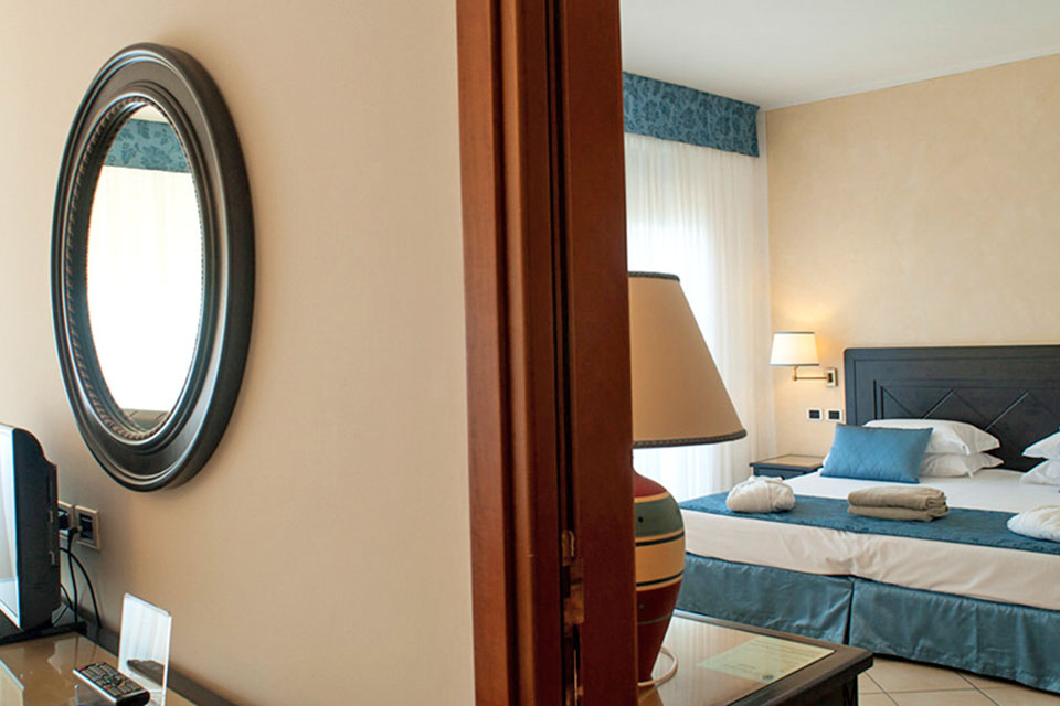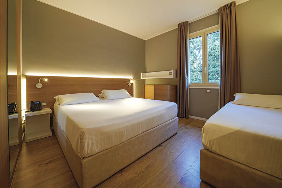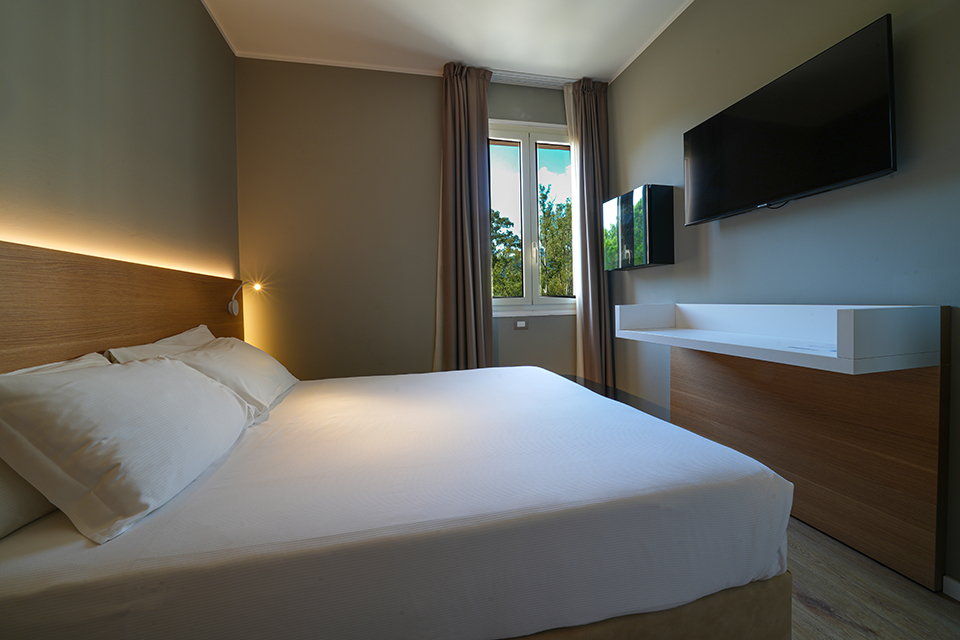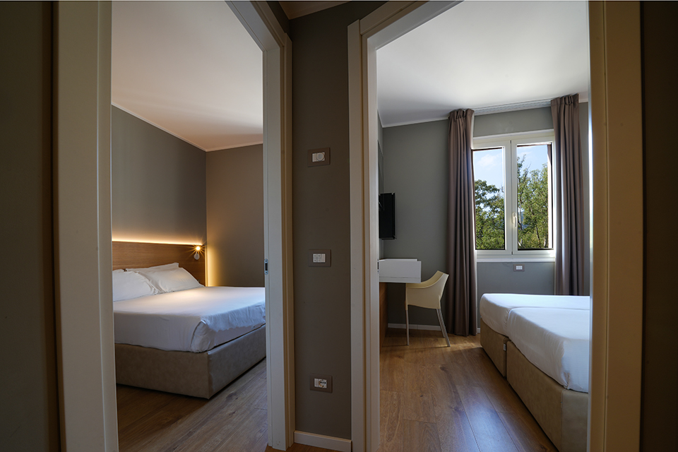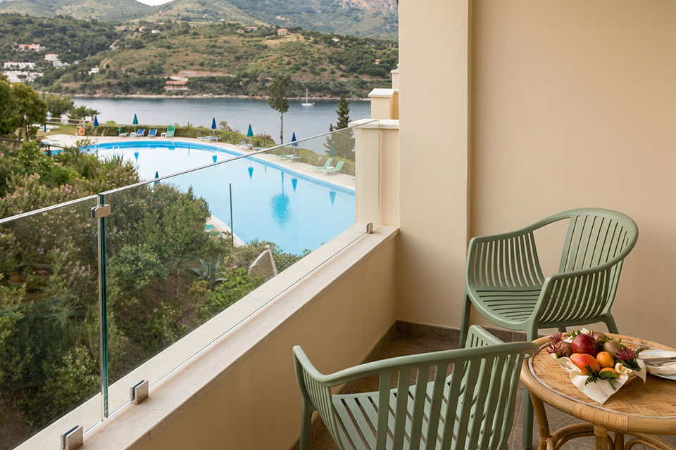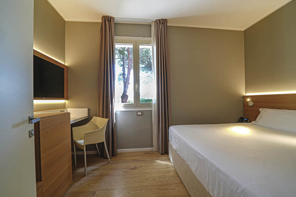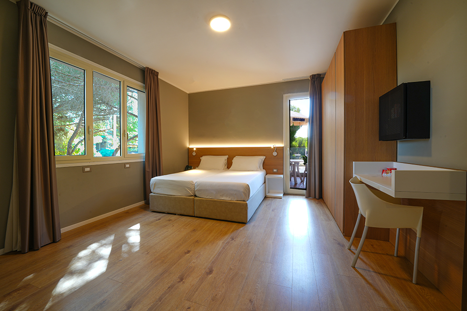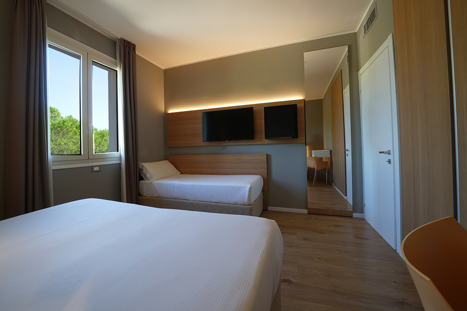 HOTEL 119 CAMERE - 109 APPARTAMENTI Il complesso si presenta come un piccolo borgo, stretto dall'abbraccio della natura incontaminata ed affacciato su una suggestiva insenatura. Immerso in un giardino ampio e curato, è composto da un corpo centrale a due piani dove, oltre ai servizi principali, sono inserite le camere per gli ospiti in Formula Hotel e da una serie di palazzine dislocate negli ampi spazi de ..