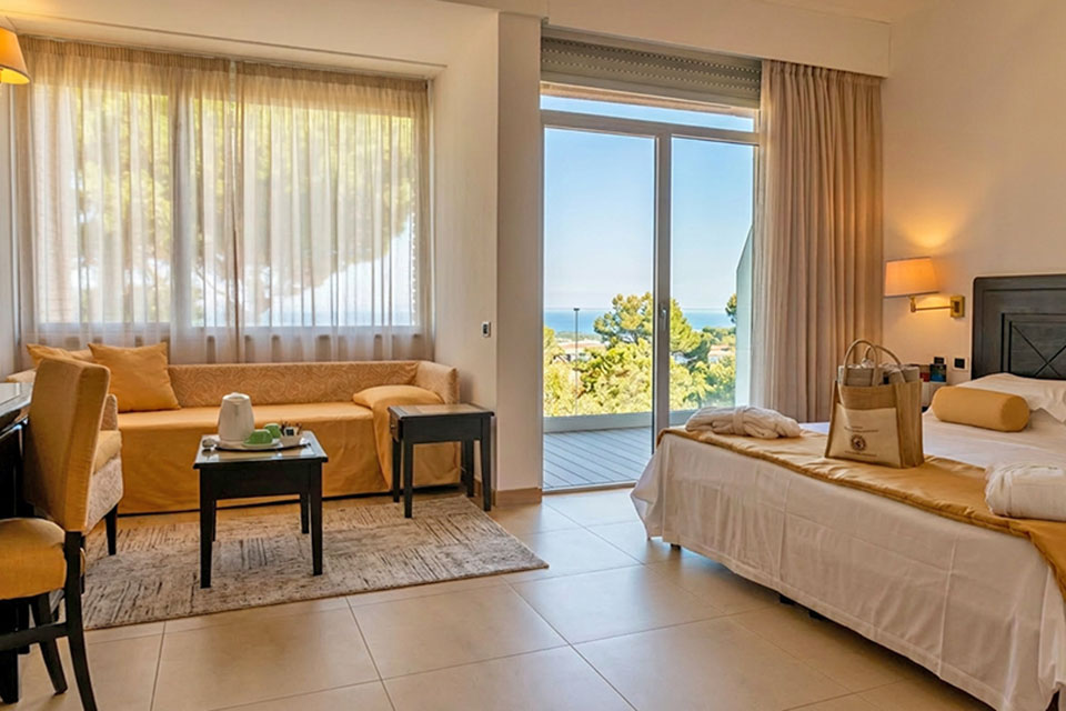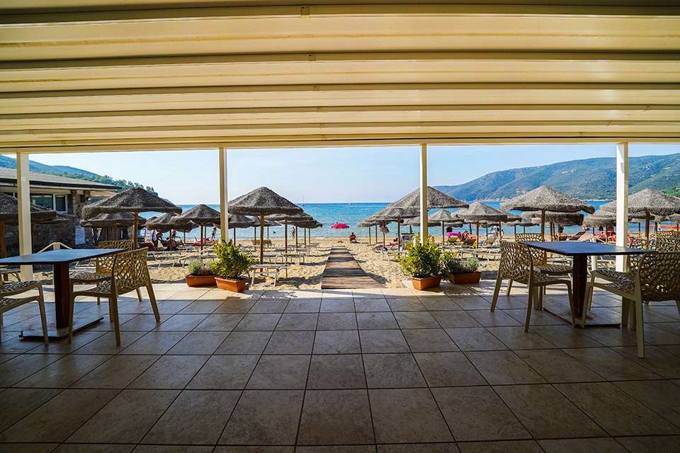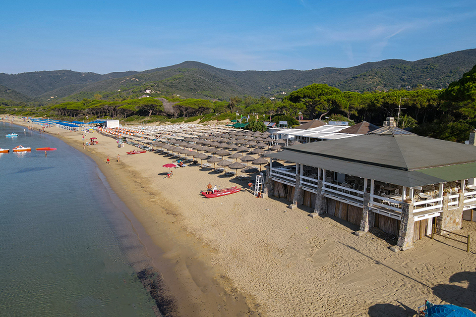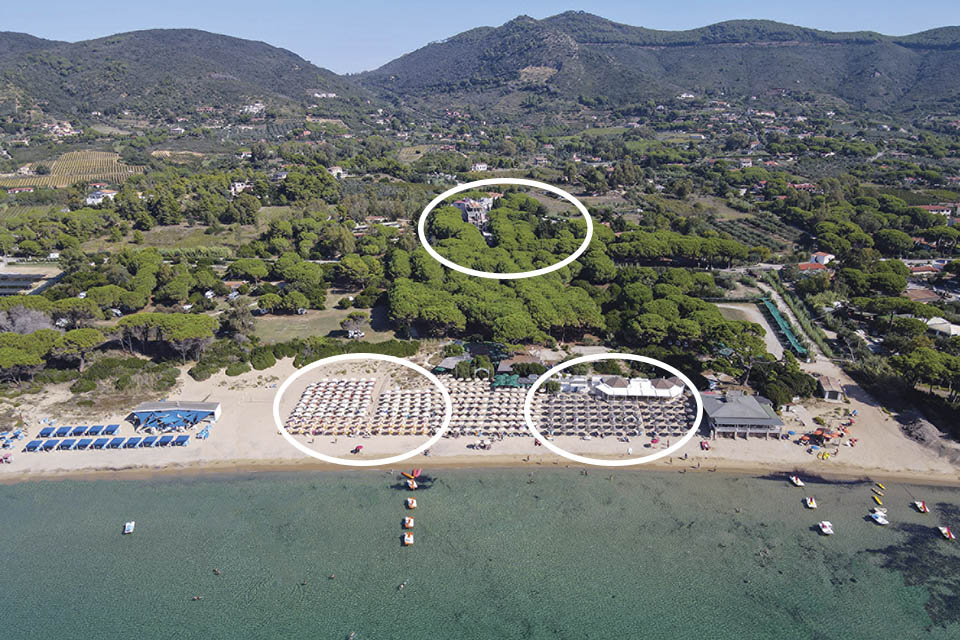 HOTEL 76 CAMERE E' situato nella piccola baia di sabbia di Spartaia, con un arenile lungo poco più di 250 mt che digrada dolcemente in un mare cristallino. La struttura si affaccia direttamente sulla spiaggia, in un grande parco privato di 7 ettari con grandi spazi verdi ombreggiati da pini marittimi e prati dove poter prendere il sole in tranquillità. E' composto dal corpo centrale con il ristorante, il bar e la ..