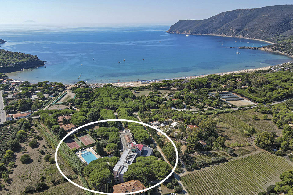 HOTEL 142 CAMERE Il complesso si trova al centro del Golfo di Lacona, in un contesto suggestivo fra l'azzurro del mare e il verde delle colline, immerso in un parco di pini, cipressi e lentischi. A due passi dalle lunga spiaggia di sabbia fine del golfo è luogo ideale per rilassarsi, vivere il mare e la natura circondati dall'incantevole cornice del Parco Nazionale dell'Arcipelago Toscano. A circa 12 km si trova il ..