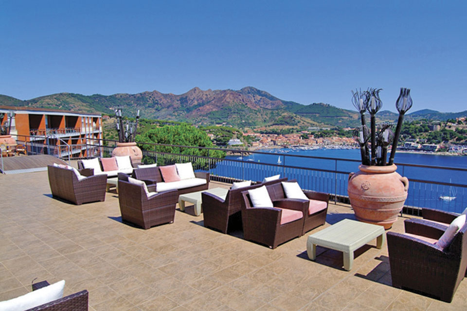 HOTEL 63 CAMERE Ubicato in posizione panoramica e circondato da un giardino di piante tipiche della vegetazione mediterranea, consente di trascorrere una vacanza a pieno contatto con il mare e la natura in una delle località più prestigiose dell'Isola. Nelle giornate serene è possibile scorgere l'isola di Montecristo e l’isola di Pianosa quasi sospese sul mare cristallino. Dista circa 5 km dal centro di Marina d ..