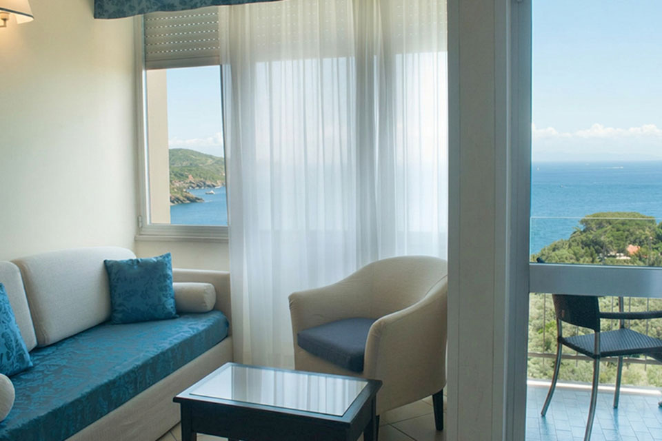 HOTEL 32 CAMERE Si trova nel cuore del Parco Nazionale dell'Arcipelago Toscano, su un suggestivo promontorio che domina le acque cristalline del golfo del Viticcio e a circa 6 km dal centro di Portoferraio; destinazione ideale per una vacanza all’insegna del relax, senza rinunciare a proposte dinamiche e sportive. L'hotel si trova a pochi passi da una piccola spiaggia sottostante, riservata e caratterizzata da un m ..