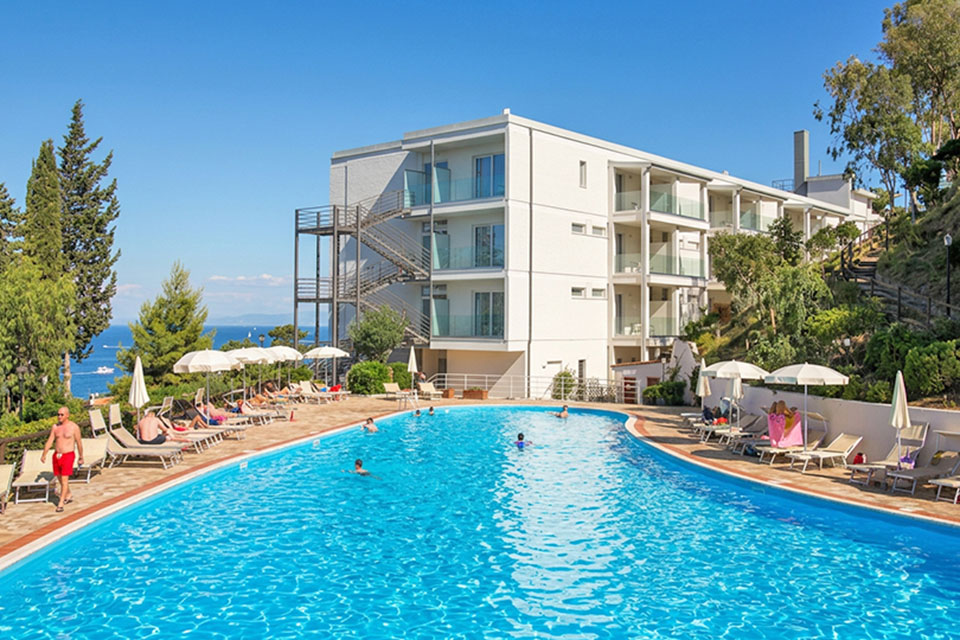 HOTEL 40 CAMERE - 36 APPARTAMENTI Immerso in una rigogliosa vegetazione, il complesso dalla caratteristica architettura mediterranea dispone sia di camere che di appartamenti articolate in varie costruzioni sulla collina vista mare., SPIAGGIA A 100 mt si trova la zona mista di sabbia e prato attrezzata con ombrelloni e sdraio, mentre la spiaggia di Lido dista 3 km. Possibilità di attracco natanti a pagamento. Nelle ..