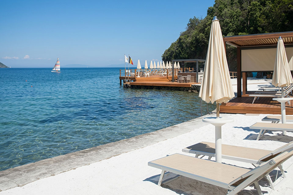 HOTEL 129 CAMERE Elegante e raffinato, ubicato direttamente sulla splendida baia di Procchio a pochi passi dal piccolo paese, è formato da un corpo centrale e da sette ville vicine fra loro, dislocate nel bellissimo parco privato antistante la spiaggia. Grazie ai numerosi servizi che offre è in grado di assicurare un soggiorno particolarmente confortevole. , SPIAGGIA PRIVATA servizio gratuito. Direttamente sul mare ..