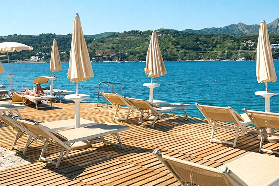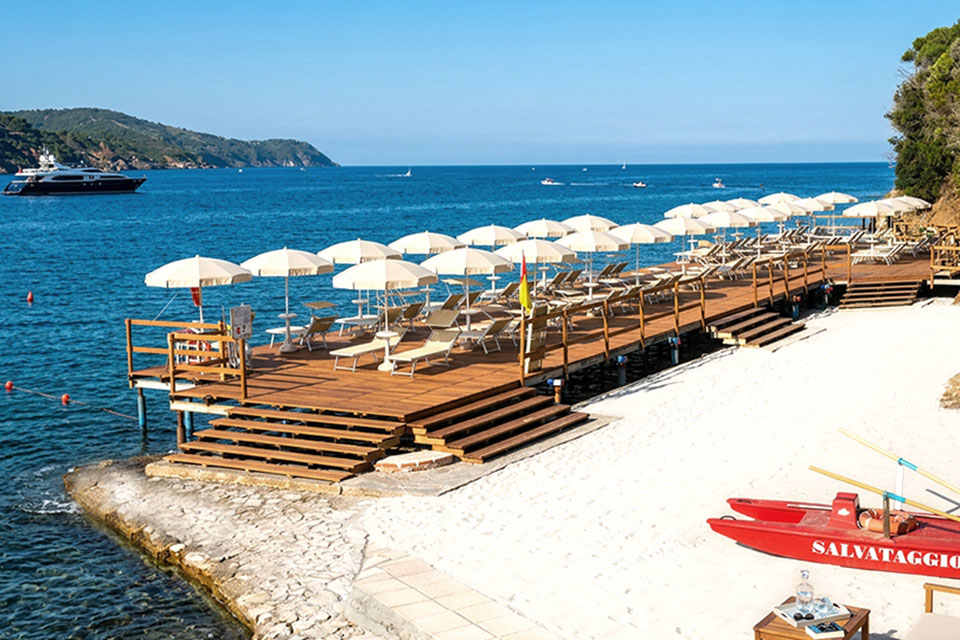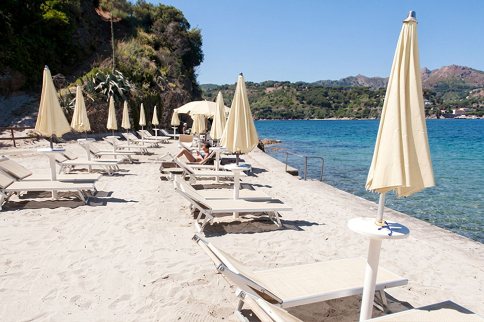 HOTEL 117 CAMERE L'elegante struttura, costituita da un corpo centrale e da piccoli e graziosi villini, si affaccia direttamente sulla spiaggia in un tratto di costa di rara bellezza, è immerso nella rigogliosa macchia mediterranea circondato da corbezzoli, lecci e lentischi. A circa 9 km si trova il centro di Portoferraio. , SPIAGGIA PRIVATA servizio gratuito. L'hotel, ubicato direttamente sulla spiaggia di sabbia ..
