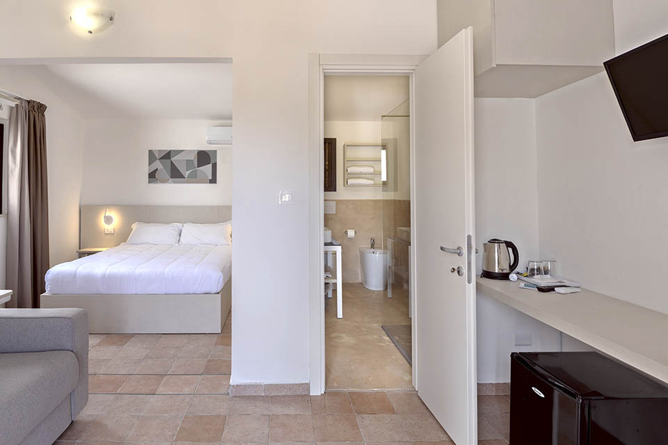 21 APPARTAMENTI Ubicati in posizione tranquilla, la struttura si trova a circa 800 mt dal centro storico della rinomata cittadina di Santa Teresa, a pochi passi dalla vivace piazzetta principale e dal porticciolo. , SPIAGGIA Dista circa 1 km dalla spiaggia di Rena Bianca, in parte libera e in parte attrezzata con stabilimenti balneari, di sabbia bianca e fine e mare cristallino. La struttura fornisce gratuitamente 1 ..