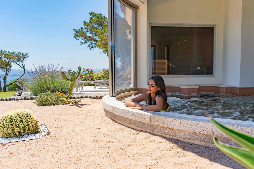HOTEL 71 CAMERE Immerse nel verde di un elegante giardino di cinque ettari e di alberi ad alto fusto, le camere sono disposte a piccoli nuclei che circondano il corpo centrale e i servizi principali. La struttura è ubicata nel Golfo di Arzachena, di fronte all’isola de La Maddalena nel parco naturale dell’arcipelago. , SPIAGGIA PRIVATA servizio gratuito. A 300 mt la spiaggia di Mannena, meglio conosciuta come Ba ..