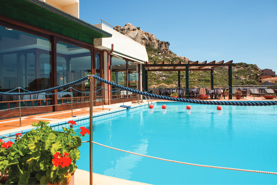 HOTEL 50 CAMERE Situato direttamente sul mare, nell'incomparabile cornice dell’Arcipelago de La Maddalena., SPIAGGIA A soli 800 mt si trova la piccola e graziosa spiaggia di sabbia di Punta Tegge e a circa 7 km quella di Monti della Rena. Centro Diving convenzionato con tariffe particolarmente vantaggiose. , ATTREZZATURE Dispone di parcheggio coperto non custodito e garage, terrazza panoramica con solarium e piscin ..