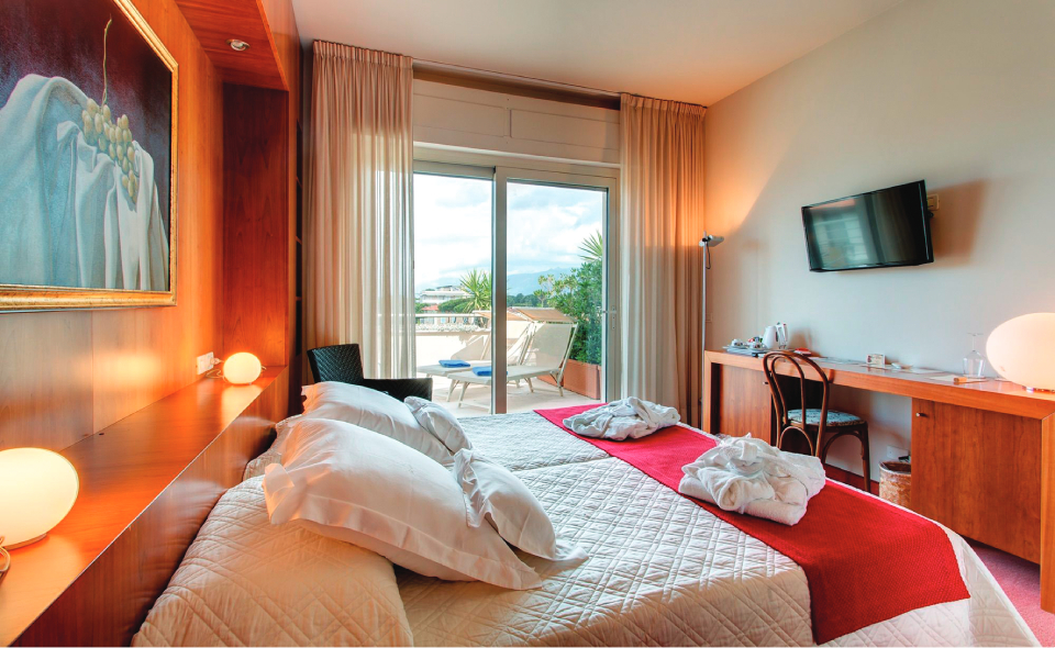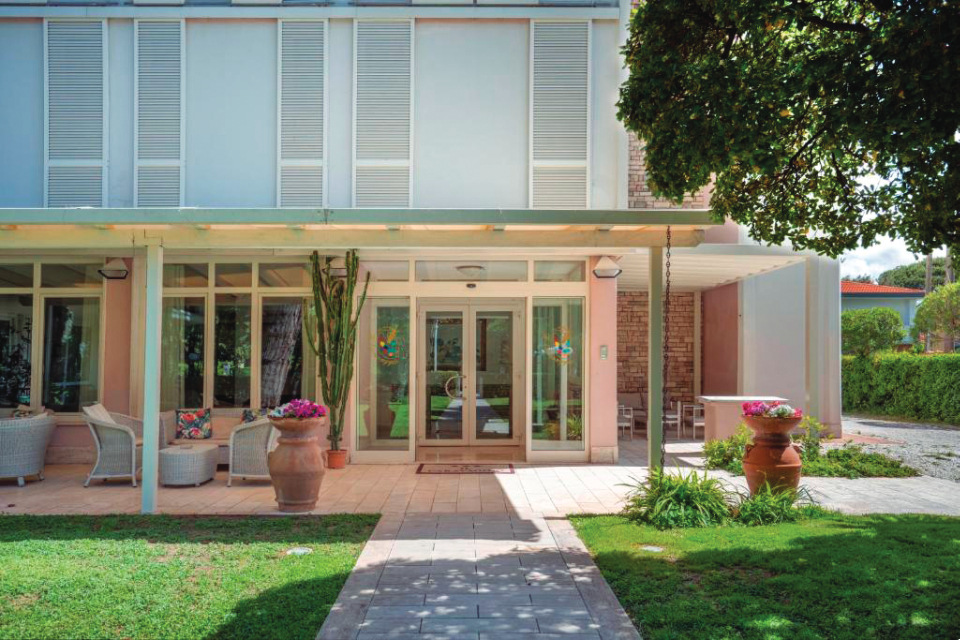 HOTEL 40 CAMERE Situato nel verde di Marina di Pietrasanta, in una zona piacevolmente tranquilla vicino al mare e a soli 400 mt dal centro. Offre ai propri clienti un ambiente sereno e rilassante dove poter trascorrere le vacanze e svariate opportunità di svago grazie alla vicinanza con le maggiori città d'arte toscane. Numerosi sono gli eventi culturali all’interno della famosa Villa La Versiliana, ex dimora di ..