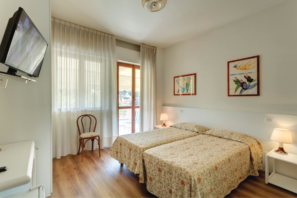HOTEL 39 CAMERE A circa 500 mt dal centro di Marina di Pietrasanta e circondato dal verde della pineta, la conduzione familiare assicura un ambiente accogliente e confortevole., SPIAGGIA CONVENZIONATA pagamento in loco. Dista circa 160 mt dalla spiaggia di sabbia di Marina di Pietrasanta. L’hotel è convenzionato con uno stabilimento balneare che offre tariffe vantaggiose., ATTREZZATURE Dispone di parcheggio privat ..