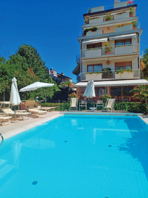 HOTEL 28 CAMERE Situato in una zona tranquilla ed immerso in un grande giardino, offre un soggiorno piacevole e rilassante in un ambiente a gestione familiare., SPIAGGIA Dista 250 mt dalla spiaggia di Lido di Camaiore, attrezzata con numerosi stabilimenti balneari., ATTREZZATURE Dispone di parcheggio privato non custodito a pagamento, piscina esterna riscaldata con idromassaggio e nuoto controcorrente, terrazza solar ..