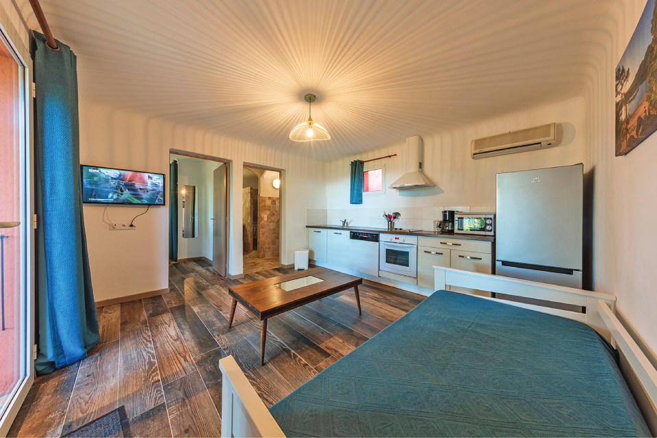 299 BUNGALOW Con accesso diretto al mare e con alle spalle la laguna della Biguglia, la struttura si estende su un terreno pianeggiante di 18 ettari di pineta ed eucaliptus, fiori e macchia mediterranea. Il villaggio, chiuso al traffico, è composto da bungalow distribuiti tra curati vialetti che arrivano fino alla zona piscina e alla piazzetta cuore della struttura. Situato a pochi chilometri a sud di Bastia, punto ..